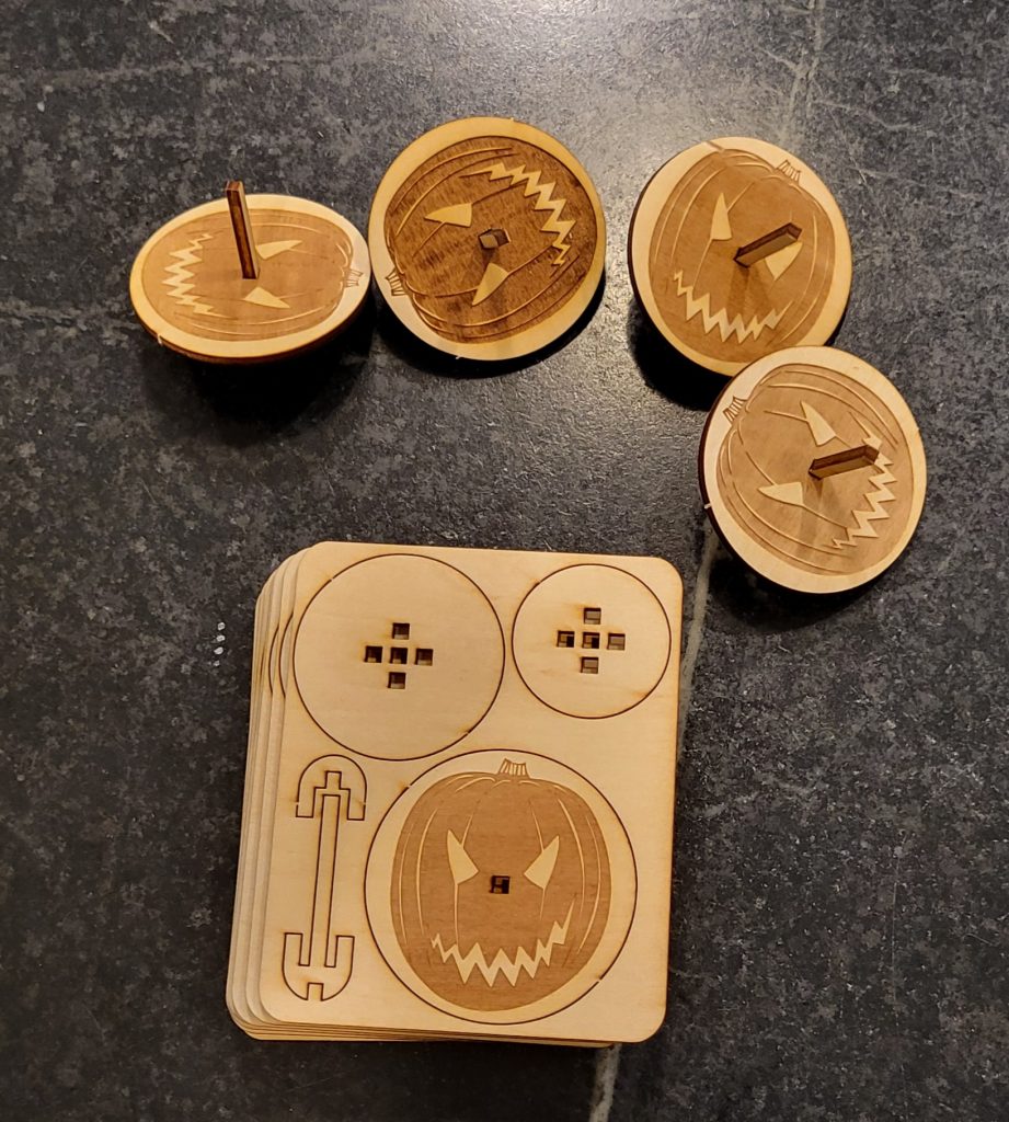 My friend runs a cool open crafting studio, Knot and Purl and I wanted to help her with some give-aways for her Halloween open house. I’ve always wanted better cad for laser crafting, so it was a good opportunity to experiment with different CAD methods. I first modeled it in Onshape. Exporting each of the sketches was a little tedious, but the tools were pretty nice, and it was easy to make the design parametric.